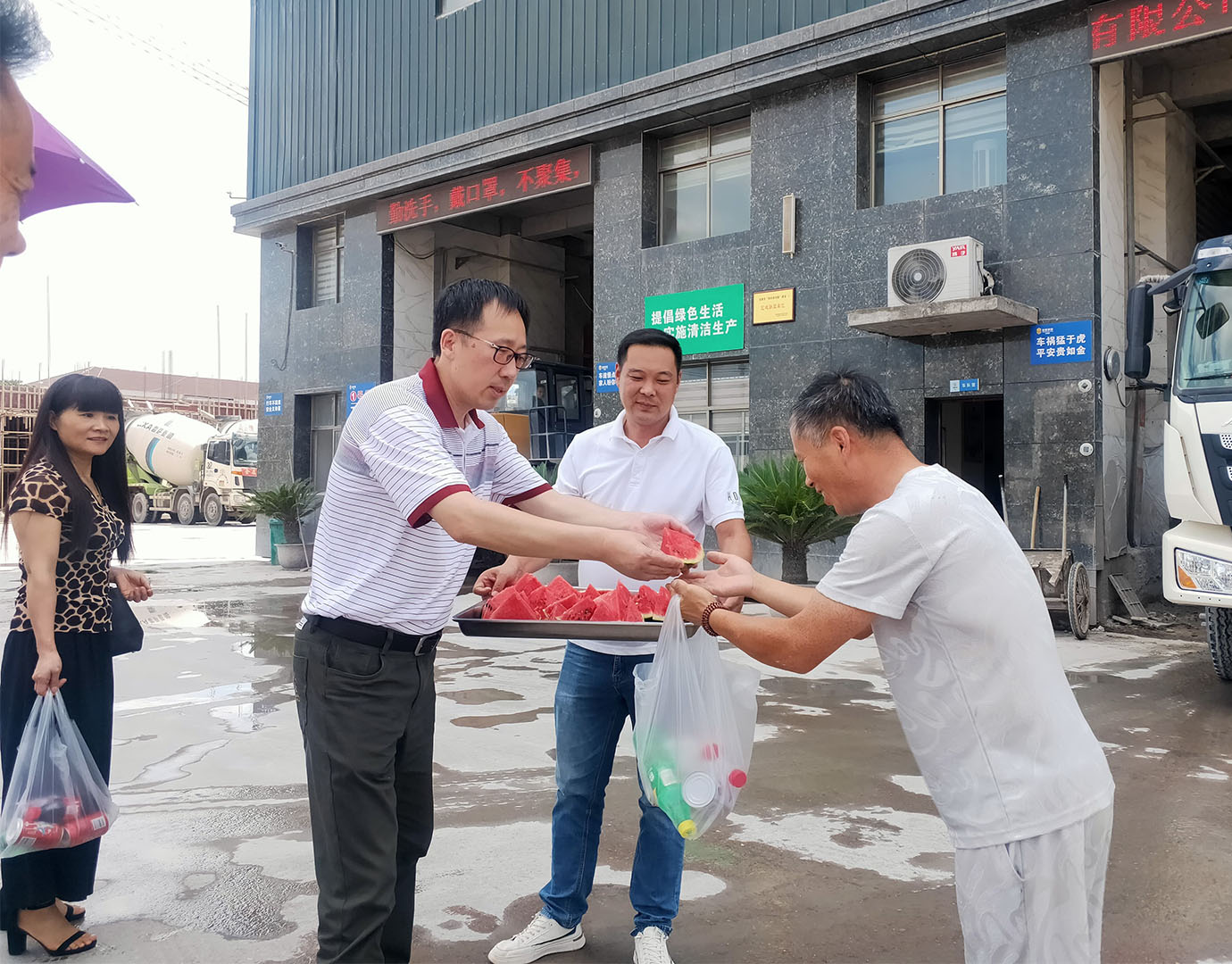 活動中,領(lǐng)導(dǎo)們親臨生產(chǎn)一線,把清涼物資送到員工手中,把關(guān)懷慰問送到了員工的心坎,向員工的辛勤付出和默默奉獻(xiàn)表示了感謝和敬意。員工們激動地接過一瓶瓶飲料、一塊塊西瓜,露出了發(fā)自心底的笑容。傅融總裁關(guān)切地叮囑大家在保證安全生產(chǎn)的同時,還要注意自己身體健康,防止高溫中暑。工會主席邵建根強(qiáng)調(diào),各分工會要切實(shí)落實(shí)好防暑降溫措施,備齊防暑物資,科學(xué)合理地安排作息時間,適當(dāng)避開高溫時段作業(yè),把員工的人身安全放在第一位。