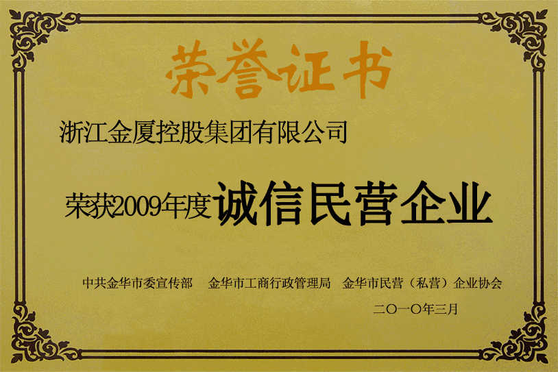 集團先后被授予“浙江省文明單位”“浙江省著名商標”“浙江省建設業(yè)重質量重安全雙優(yōu)示范單位” “金華市先進建筑業(yè)企業(yè)”“金華市知名商號”“金東區(qū)模范職工之家”等榮譽稱號。在2023年度,集團下屬公司先后榮獲“金東區(qū)房地產納稅十強”“開發(fā)區(qū)納稅超五千萬元企業(yè)”“ 蘭溪納稅千萬元以上企業(yè)”“義烏市工業(yè)企業(yè)五十強”“永康市納稅優(yōu)勝企業(yè)”“金東區(qū)稅收超五百萬元工業(yè)企業(yè)”“義烏廿三里街道十大突出貢獻企業(yè)”等榮譽。